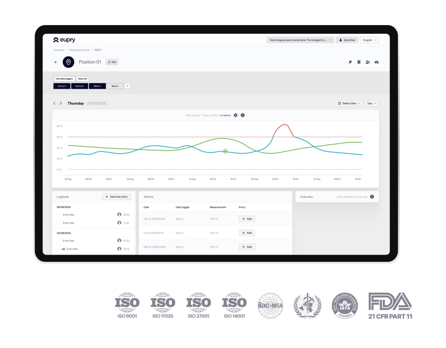 Get an easy overview of all Eupry’s products from validation to calibration and automated monitoring temperatures, humidity, CO2 and more.